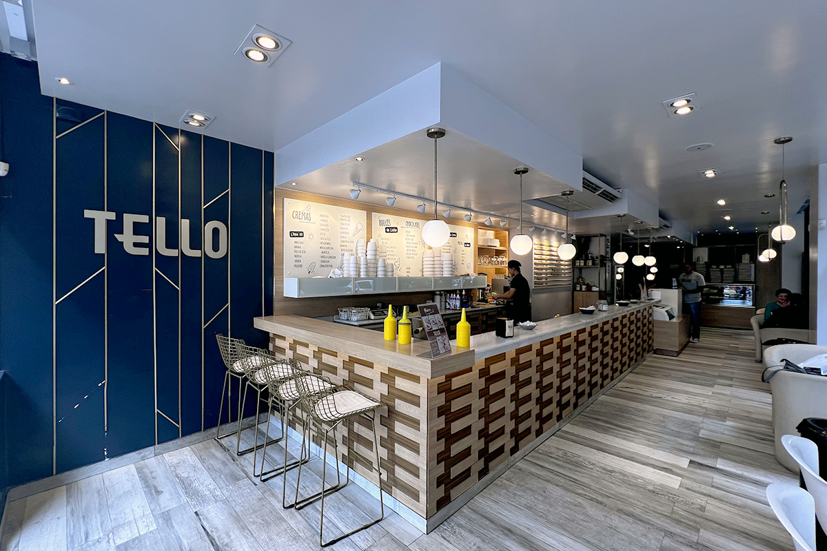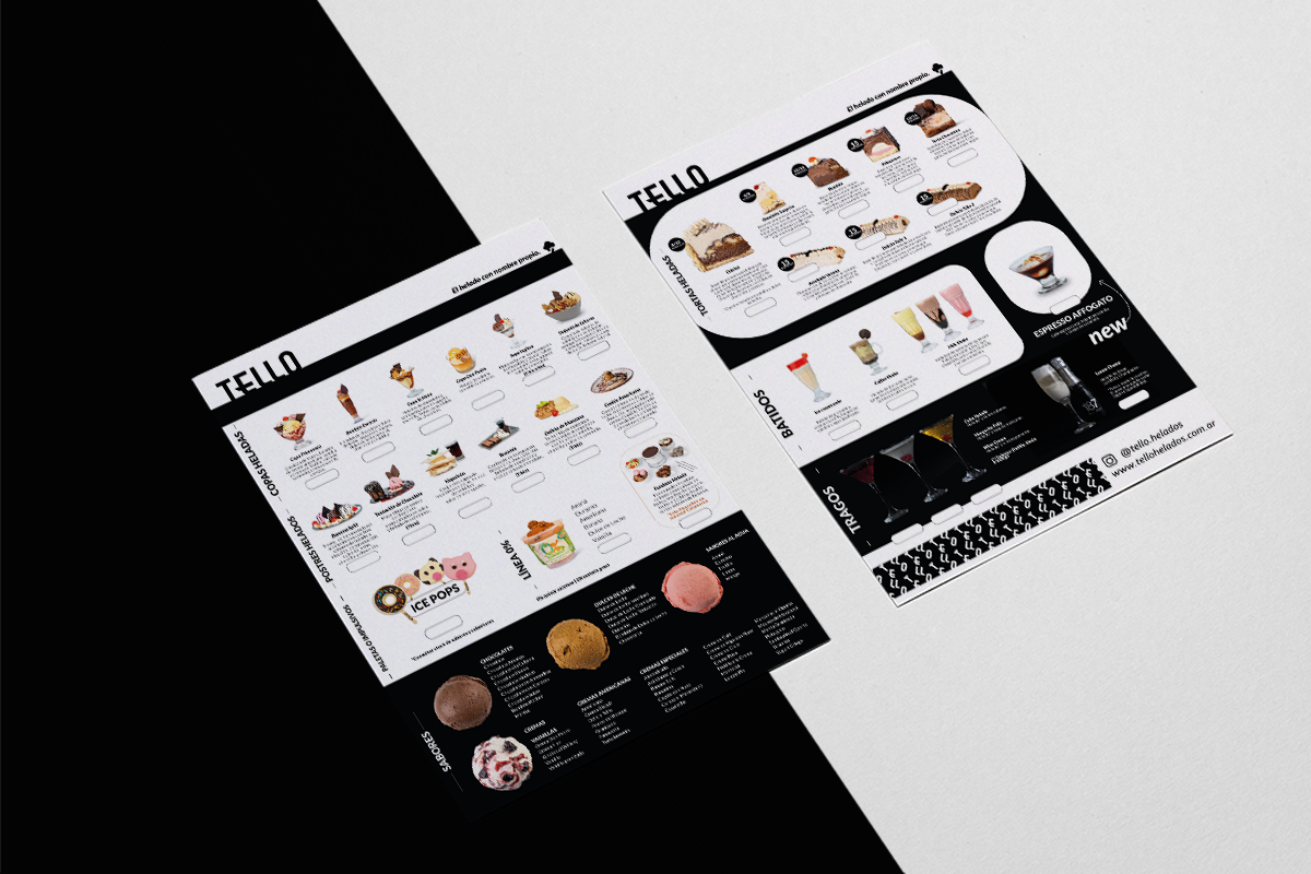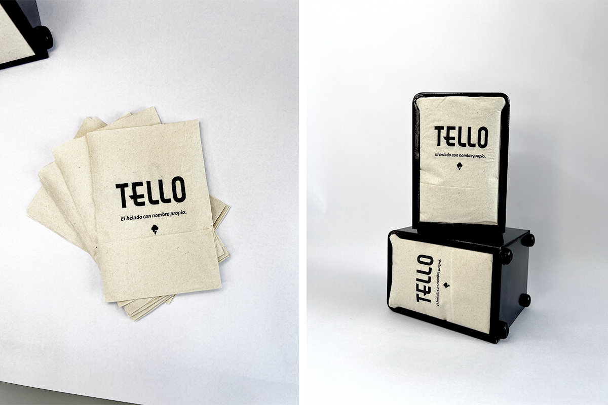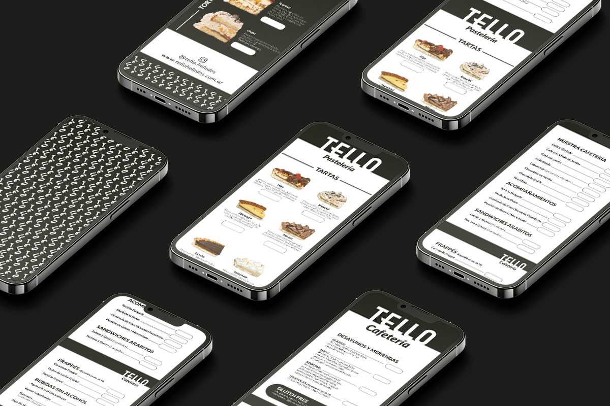 En Standingroup acompañamos esa esencia diseñando una identidad visual sólida: la bajada del logo, packaging de tortas y helados, menús impresos y digitales, así como bolsas y boxes que refuerzan la presencia de Tello en cada detalle de su propuesta gastronómica.